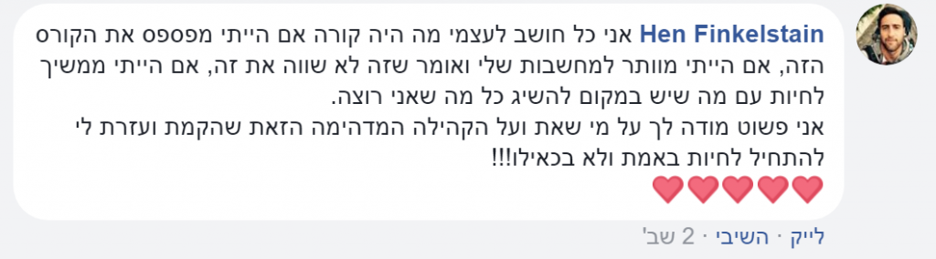 – אתה נכנס לקהילה של מאות אנשים שמגשימים חלומות, אנשים שחושבים מחוץ לקופסא וחיים את החיים מתוך תחושת שליחות.