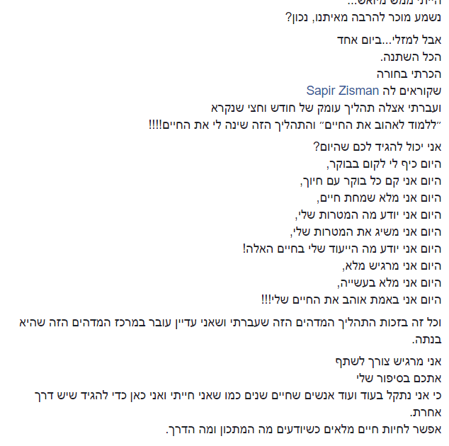 התהליך הזה זה הדבר הכי טוב שקרה לי בחיים!"