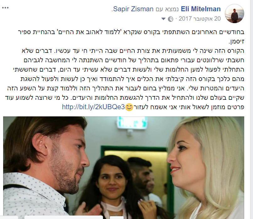 "אני הייתי מאוד סקפטי, אני עובד במכירות והרגשתי שמוכרים לי משהו ורוד. אחרי המפגש הראשון והשני המוח שלך עובד אחרת."