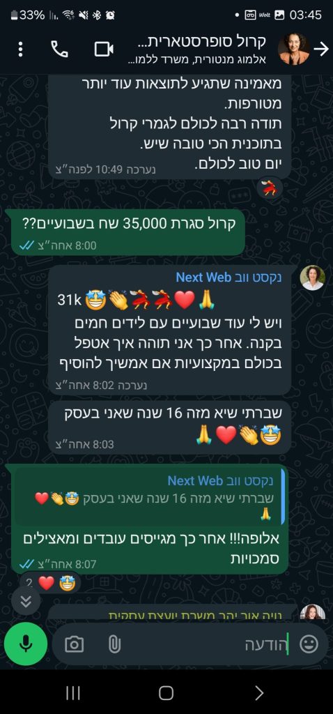 ועוד המון דרכים שאתם תבינו ותגלו תוך כדי שאנחנו מסוגלים להציע (ביניהם: שיחות טלפון וזום אישיות 1 על 1 ועוד…!)