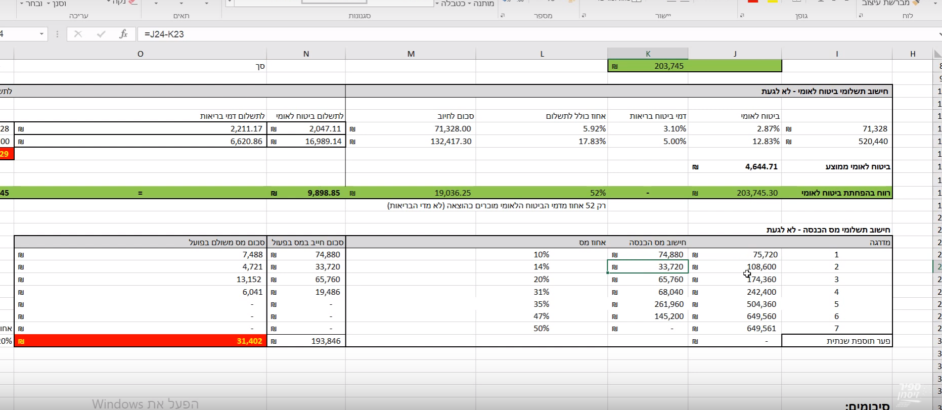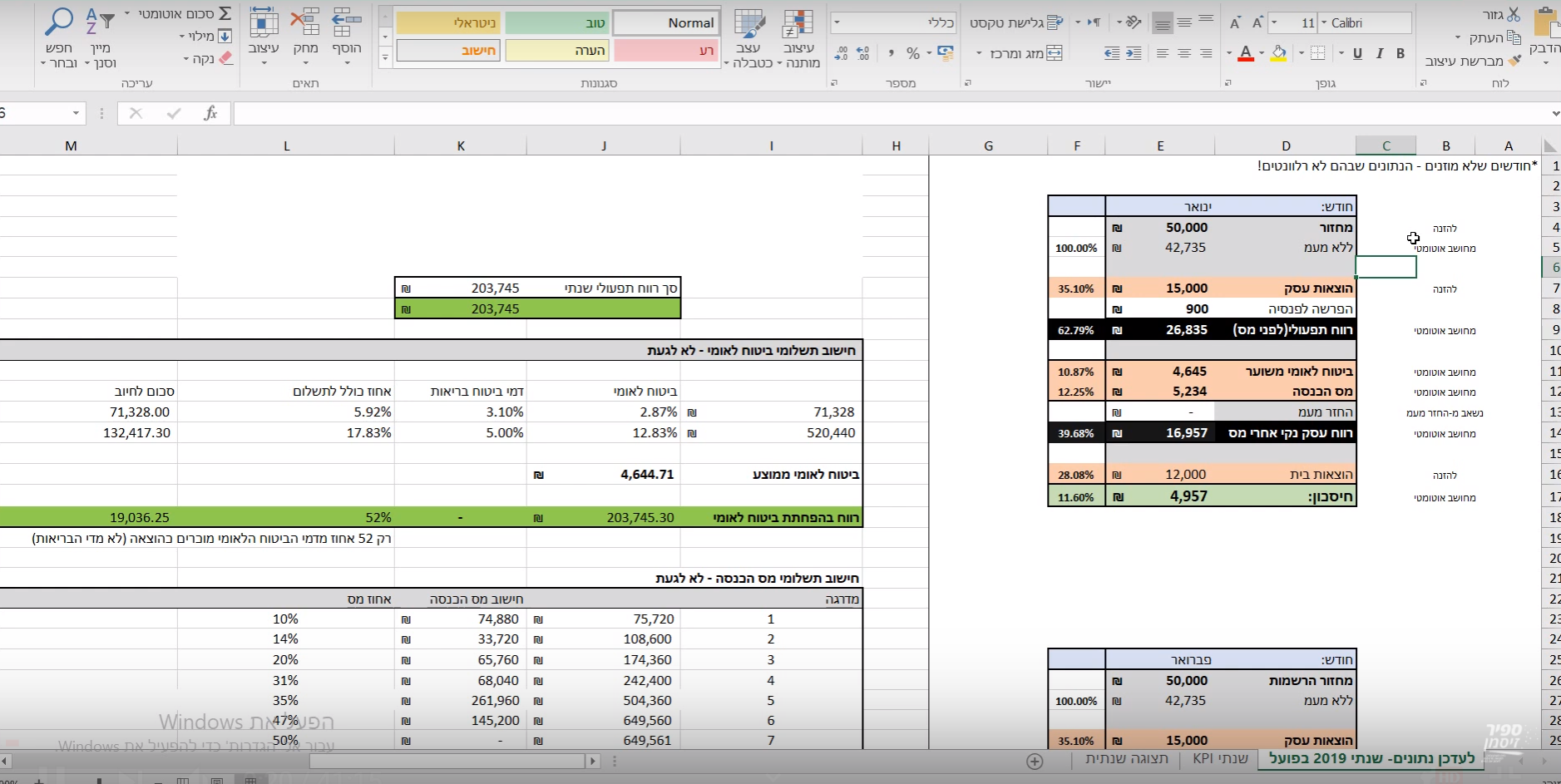 – חישוב רווח והפסד חודשי מצטבר שנתי