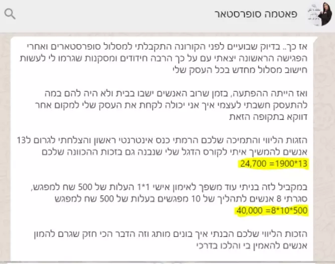 "הבנתי שאני לא מרוויחה מספיק כסף ואני לא מבינה מספיק בשיווק ומכירות.